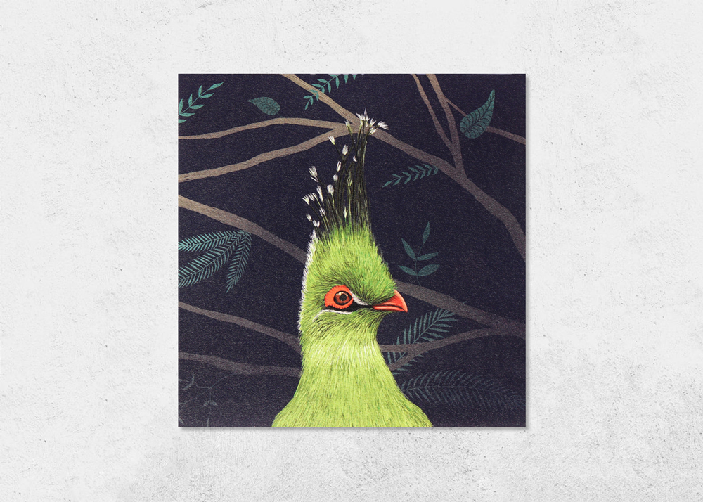 Carte Touraco de Livingstone, dessin réaliste à la main d’après photo